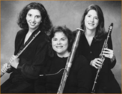 The Ariel Trio consists of three members of the Ariel Quintet. The quintet was established in 1984 by five New England Conservatory graduates. In 1988 the quintet received an Artists Diploma from the Longy School of Music where their chamber music coaches included Christopher Kruegger and Victor Rosenbaum. The group has competed as finalists in competitions sponsored by the Shoreline Alliance for the Arts and East-West Management. The Ariel Quintet has been featured in a wide range of activities throughout New England, including formal recitals, educational programs, concert series, and radio broadcasts. They have recorded Peter Childs Woodwind Quintet for the CRI label and Daniel Pinkhams Advent Cantata for the Koch International label. For the Albany label, a Collaboration was made on Gardner Reeds music with Dana Fortunato. The members of the quintet are active as free-lance performers and teachers in the Boston area. BIOGRAPHIES Clare Nielsen received her Bachelor of Music in Flute performance from New England Conservatory of Music and Master of Arts in Music History from Tufts University. In addition to teaching and free-lancing in the Boston area, she is a member of the Eastern Connecticut Symphony Orchestra in New London, Connecticut and the Ariel Wind Quintet. As a member of the quintet she received an Artists Diploma in Chamber Music from the Longy School of Music. Rebecca Leonard received her Bachelor of Music in Clarinet Performance from the New England Conservatory of Music. Active as a bass clarinetist as well as a clarinetist, she has performed extensively throughout the New England area. She can be heard regularly with the Nashua , Portland , Albany , New Hampshire, Rhode Island, and Vermont Symphony Orchestras. She is also a frequent theater musician. As a member of the Ariel Quintet she has performed in school presentations, live radio broadcasts, and performing arts series. Rebecca has taught at Brown University, and currently has a large private studio in her home as well as being an adjunct professor at the University of Massachusetts - Lowell. She is a frequent adjudicator of the Massachusetts District Festival auditions and the Rhode Island All-State and Solo and Ensemble Festivals. In Ukraine she conducted a woodwind masterclass at the Tchaikovsky Conservatory. Rebecca can be heard on the Koch International, CRI, Pickwick, and Albany Labels. She lives with her husband, Michael, their children, Mallory and Hunter, and their Rottweilers, Quincy and Callie in Wayland. Rebecca and Michael began Leonards Music in 2003 and now rent, sell, and repair all types of band instruments. Raised in Philadelphia, Donna Hensil Taub had a chance meeting with the bassoon at age twelve and immediately fell in love. Her musical education began at the Settlement Music School where she studied bassoon and chamber music with Shirley Curtiss. Ms. Hensil Taub earned a Bachelor of Music degree from Indiana University where she studied with Sidney Rosenberg and continued her studies with Richard Ranti at the New England Conservatory, earning both a Masters degree and Graduate Diploma. She was the second bassoonist with the New Bedford Symphony for 5 seasons and has performed with the Rhode Island Philharmonic and Portland Symphony. She resides in Boston and is an active freelanc musician in the New England area. |